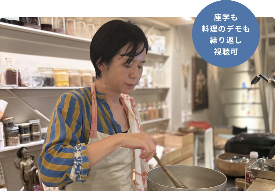 一人でも多くの方に "一生使える食養生の知恵" を身に付けたいという思いで、店舗で実際に見て味わって、交流を深めながら学べる「リアル参加」と、遠方にお住いの方やお忙しい方のために「オンライン参加」の2種類の参加方法をご用意いたしました。